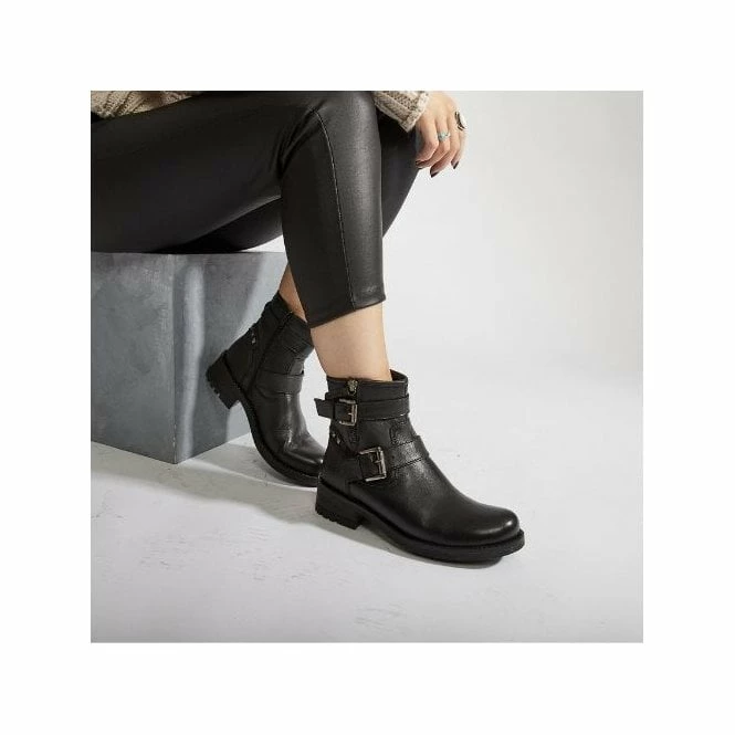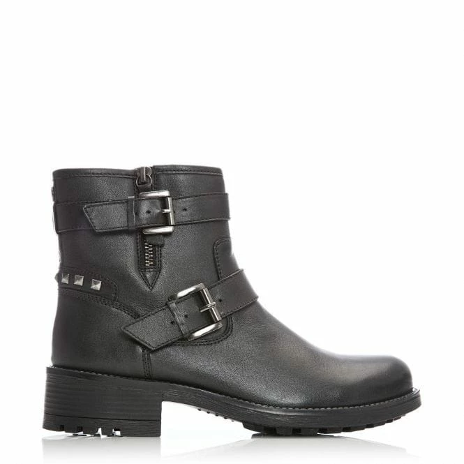 Add a new look to your outfits with Abigaill, our gorgeous biker style ankle boot. We love the double buckle feature, the soft round toe keeps the shoe looking feminine whilst the leather sock ensures they feel as good as they look. The burnished finish adds to the impact of the shoe. Complete with a flexible outsole to let the boot move with you when you walk. The inside zip allows for easy access. Please note that the outside zip is non-functional.