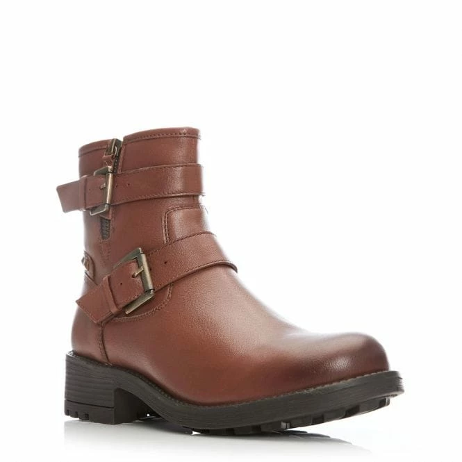 Add a new look to your outfits with Abigaill, our gorgeous biker style ankle boot. The burnished finish adds to the impact of the shoe. We love the double buckle feature, the soft round toe keeps the shoe looking feminine whilst the leather sock ensures they feel as good as they look. Complete with a flexible outsole to let the boot move with you when you walk. The inside zip allows for easy access. Please note that the outside zip is non-functional.