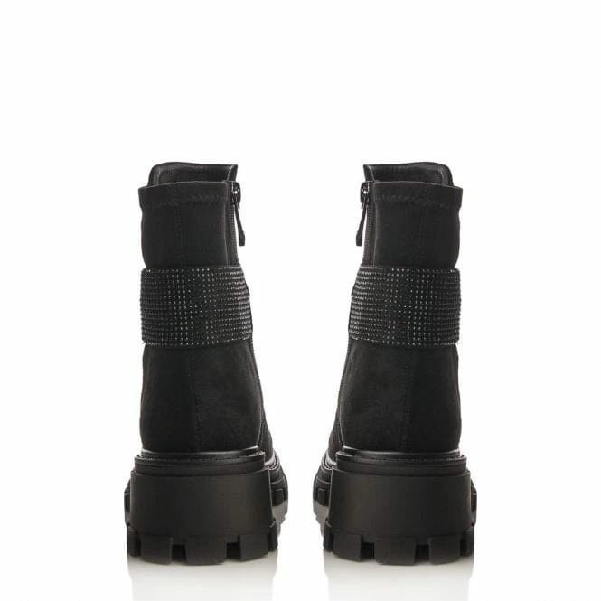 Add a new look to your outfits with Arilen. Complete with a heavy cleated sole and soft round toe, the glitz strap adds a suble touch of glamour whilst leaving the boot effortless to style. The stretch back feature allows for a flawless fit on the ankle for a wear that feels as good as it looks. Complete with padded sock and inside zip. If you wear a half size, we recommend sizing down.