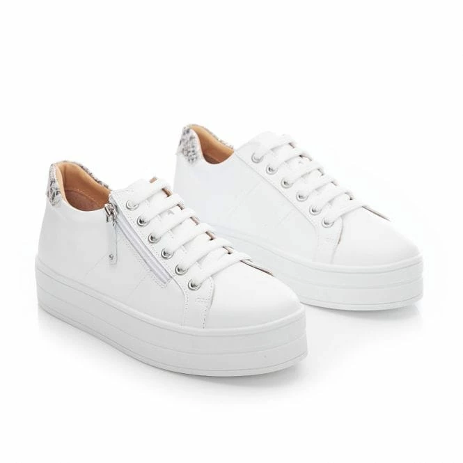 Glazie is your go to trainer for the next few months. Made with soft buttery leather, Glaze is set on an elevated slab sole. A functioning zip and laces not only adds detail, but looks effortlessly chic. Leather lining and a padded leather insole provide all day comfort.