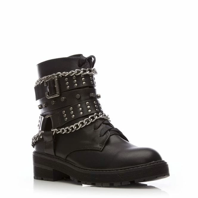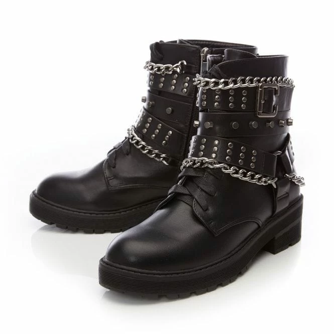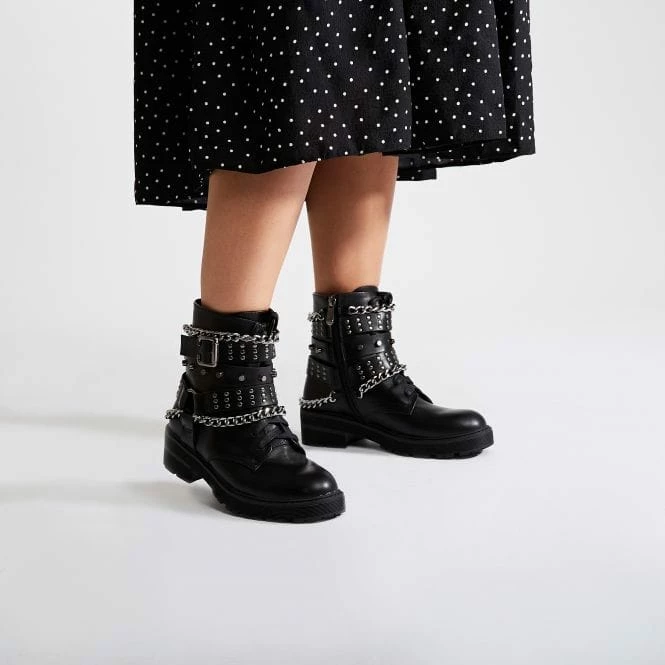 Benetcha is the ultimate biker boot. We love the heavily embellished design, perfect for adding detail to an understated outfit. The lace-up fastening means you can adjust the width whilst the inside zip provides easy access. Style with jeans for a smart-casual look.