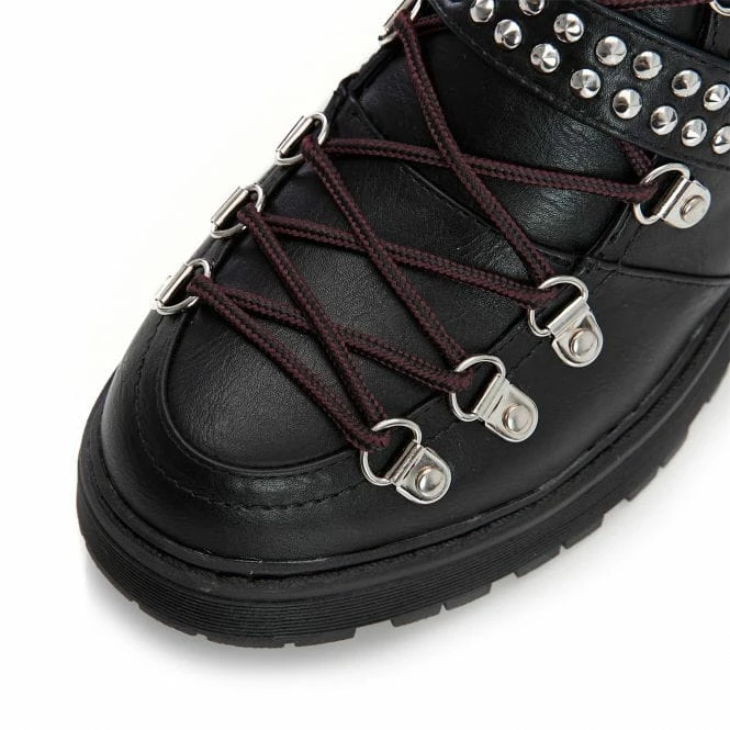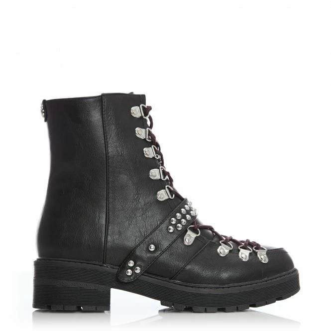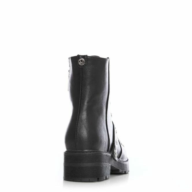 Look your best in Briory from our M by Moda collection – this beautiful black boot is perfect for adding a new look to your outfits. The contrasting laces add extra detail, whilst the studded strap adds another element. The faux fur lining ensures they feel as good whilst the inside zip allows for easy access. Complete with a chunky sole. Perfect to pair with an oversized jacket.