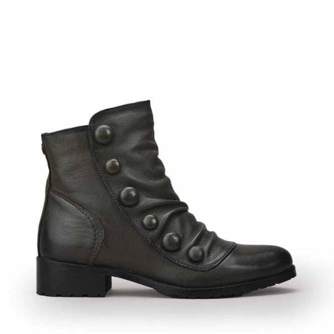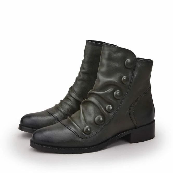 A boot to boast about, Bronwen is the ultimate short boot, featuring a low wearabale block heel and button detail down the side. The ruched effect adds further character to the shoe – whilst still leaving it effortless to style. Complete with inner zip fastening and soft leather sock. Pair with jeans, a blouse and blazer. The asymmetric cut is flattering on the leg, ensuring the boot looks as good as it feels.