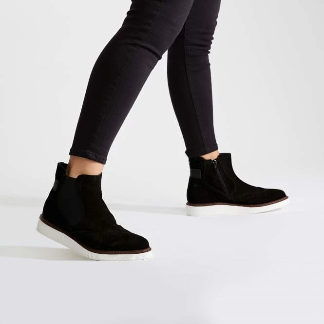 Add a new look to your boot collection with Cheena. This gorgeous ankle boot features a stunning suede upper with brogue detail. The white slab sole adds a modern twist to this shoe, whilst the almond toe keeps it looking feminine. The elastic gusset gives you that flawless fit around the ankle and lets the shoe move with you – style with jeans.