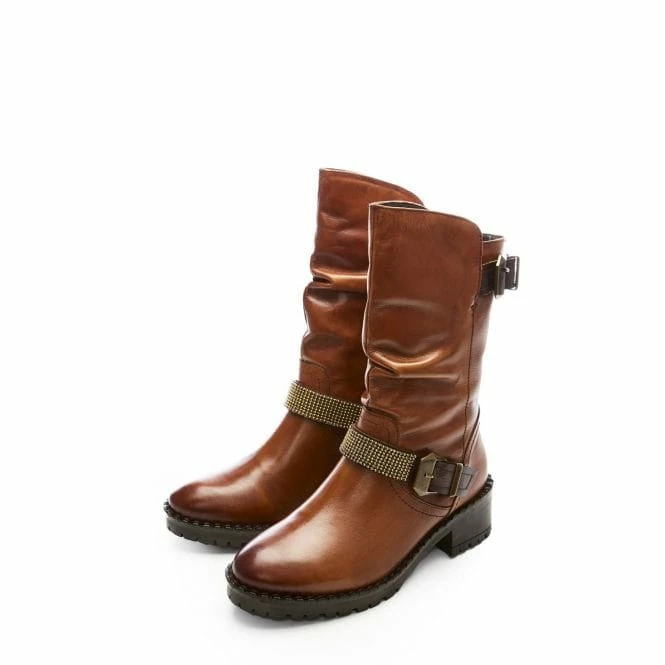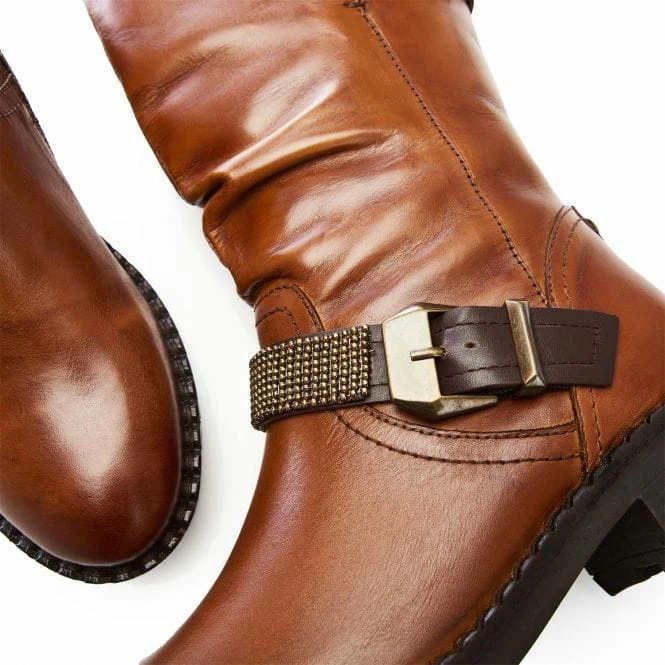 Elsee is an autumn-winter essential. This beautiful leather rouched boot features two buckles and studded detail on the strap, adding texture whilst still leaving them effortless to style. The mid-calf leg length makes them perfect to wear with jeans or tights and a dress. Complete with a soft almond toe and a block heel, prepare for some serious compliments. The inside zip makes them easy to get on and off.