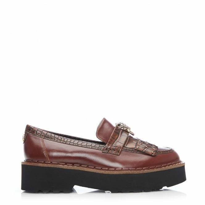 Elevate your everyday shoe collection with Evelina. This must have modern loafer features our iconic Larry the Leopard whilst the leather finish adds to the luxe vibe. We love the contrast stitch detail and the classic fringe finish. Pair this slip on style with your favourite jeans a t shirt for a chic off duty vibe.