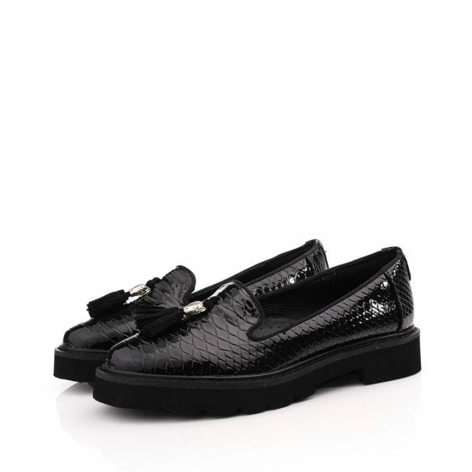By the envy of all your friends with Evelyn. Featuring a chunky cleated sole for a modern look and tassel detail with Larry the Leopard keeper – the luxurious leather lining and padded sock adds to the experience of the slipper cut loafer. Perfect to pair with tailored trousers and a blouse.