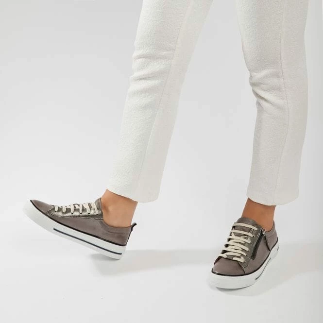 Filicia is the ultimate everyday leather trainer. Complete with a stripe slab sole and side zip which means you can set the laces for that perfect fit. The leather sock and lining will keep you comfortable all day long – style with your casual collection.