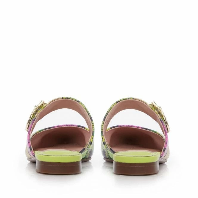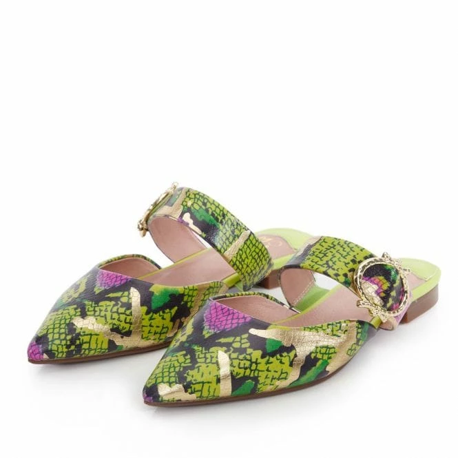Feel your best in Florally, the sensational slip-on shoe. A perfect alternative to heels, the sleek pointed toe and metallic buckle detail add to the impact of the shoe. The second strap keeps your foot secure for a comfortable wear, whilst the leather sock and lining add to the luxurious feel. Perfect to pair with occasion wear and everyday styling alike.