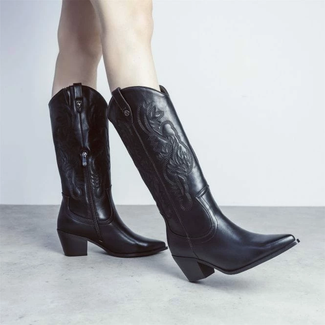 Introducing Isela. Cowboy inspired in line with the western trend, this boot features a classic block heel and pointed toe. Complete with embroidered detail, the faux fur lining and leather sock ensure they feel as good as they look.