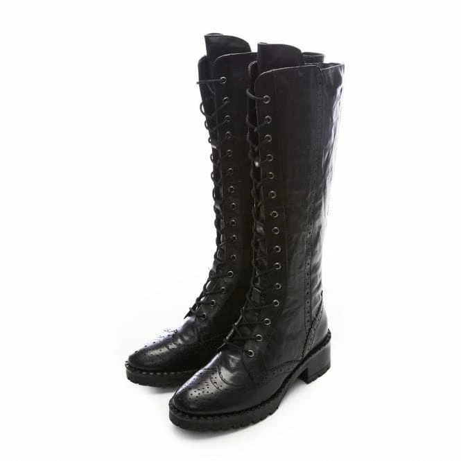 Add a new look to your boot collection with Liberto. We love the brogue style design – the crinkled leather adds another element to this beautiful long boot. The inside zip means you can set the laces and leave them in the perfect place. The soft short pile faux fur lining and leather footbed ensure the boots feel as good as they look. The cleated sole adds a modern twist whilst also providing extra grip – the elastic panel at the back lets the boot move with you for ultimate comfort and provides a snug fit. Perfect to pair with knitwear.