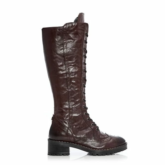 Add a new look to your boot collection with Liberto. We love the brogue style design – the crinkled leather adds another element to this beautiful long boot. The inside zip means you can set the laces and leave them in the perfect place. The soft short pile faux fur lining and leather footbed ensure the boots feel as good as they look. The cleated sole adds a modern twist whilst also providing extra grip – the elastic panel at the back lets the boot move with you for ultimate comfort and provides a snug fit. Perfect to pair with knitwear.