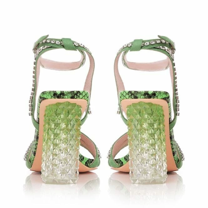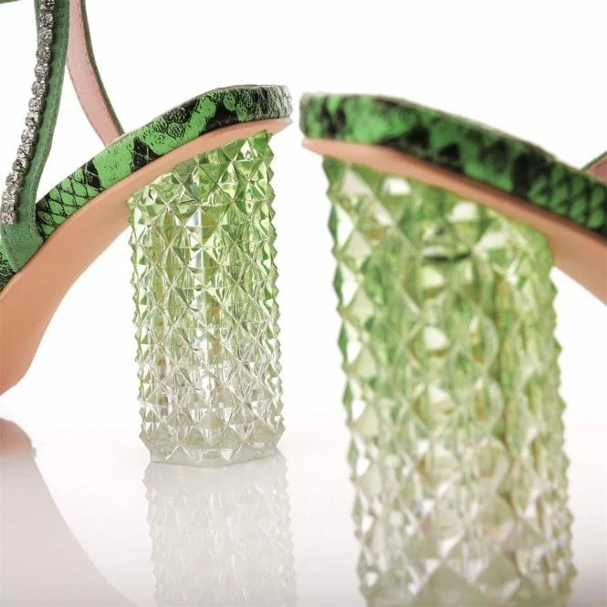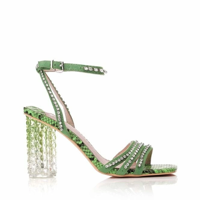 Make an impression in Madona. Featuring a stunning crystal heel, perfect for adding glamour to your attire. Complete with diamante feature straps and contrasting snakeskin detail – the ultimate wow shoe. The adjustable ankle strap allows for the perfect fit.