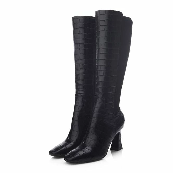 Let your shoes do the talking with Millea, the ultimate boot. Featuring a swoosh block heel, the pointed toe and high leg finish add to the glamour of the boot whilst the croc effect takes it to the next level. Prepare for some serious compliments. Complete with inside zip and rubber sole for extra grip.