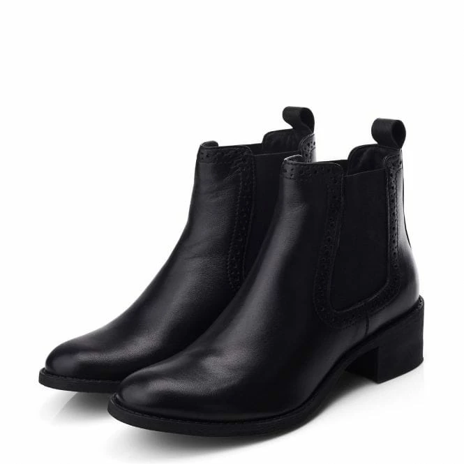Make an impression with Millia. This Chelsea style ankle boot features brogueing detail, adding texture to the shoe whilst leaving it effortless to style. The block heel adds wearable height, and the almond toe keeps the shoe looking feminine.
