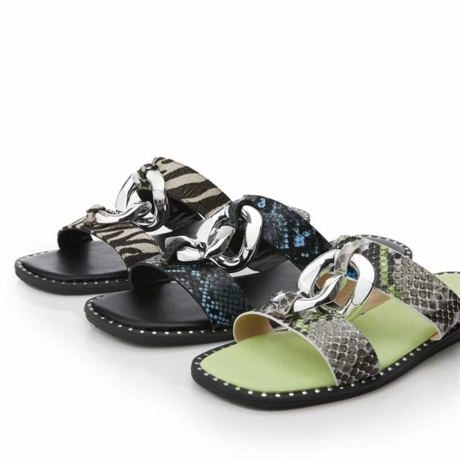 Add a new look to your outfits with Onalee, our stunning M by Moda slip-on flat shoe. The metallic link adds detail whilst leaving the sandal effortless to style. Perfect for showing off your pedicure, this shoe will work with a wide selection of outfits.