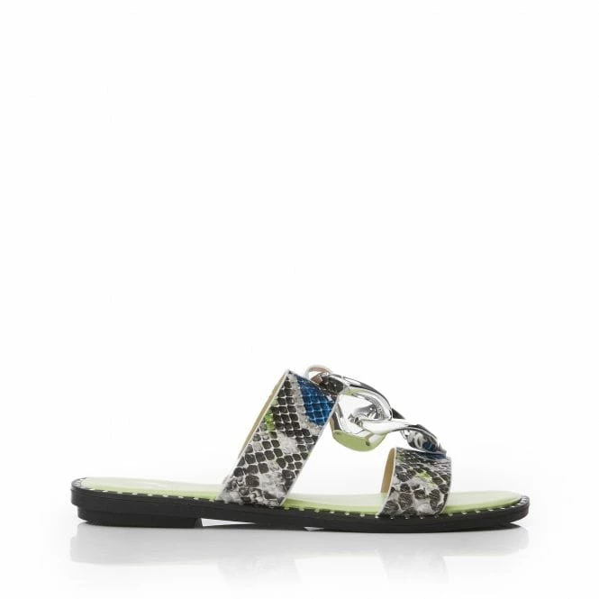 Add a new look to your outfits with Onalee, our stunning M by Moda slip-on flat shoe. The metallic link adds detail whilst leaving the sandal effortless to style. Perfect for showing off your pedicure, this shoe will work with a wide selection of outfits.