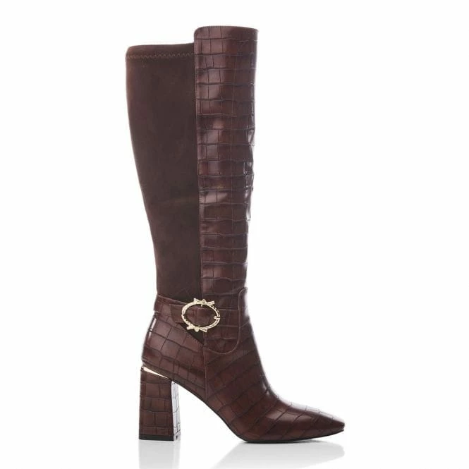 Serve up new looks with Saretta. Sitting below the knee, this long boot features a wearable block heel and buckle trim, complete with a powerful pointed toe. The faux fur lining and soft leather sock ensure it feels as premium as it looks.