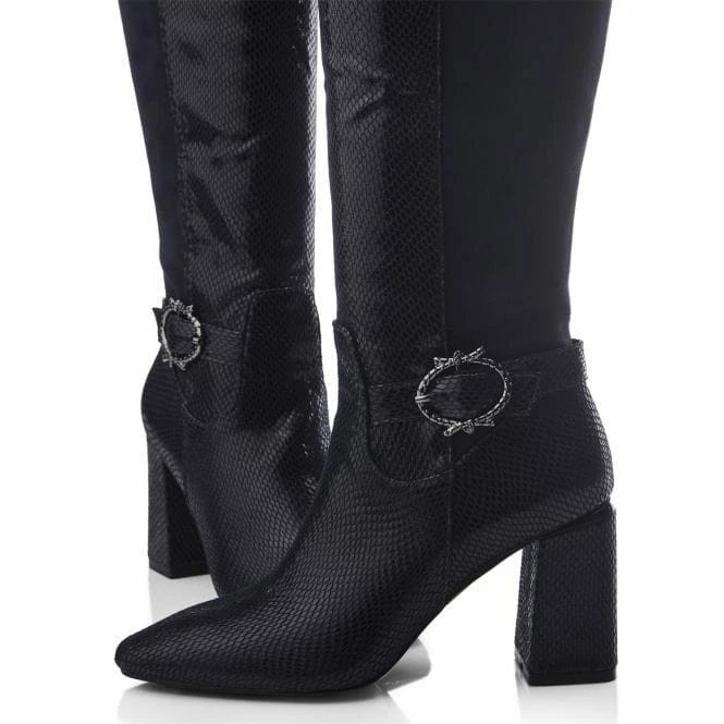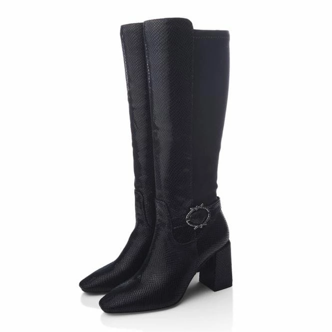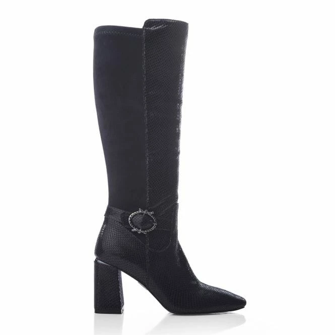 Serve up new looks with Saretta. Sitting below the knee, this long boot features a wearable block heel and buckle trim, complete with a powerful pointed toe. The faux fur lining and soft leather sock ensure it feels as premium as it looks.