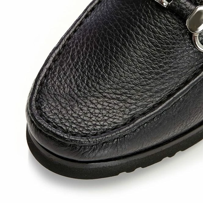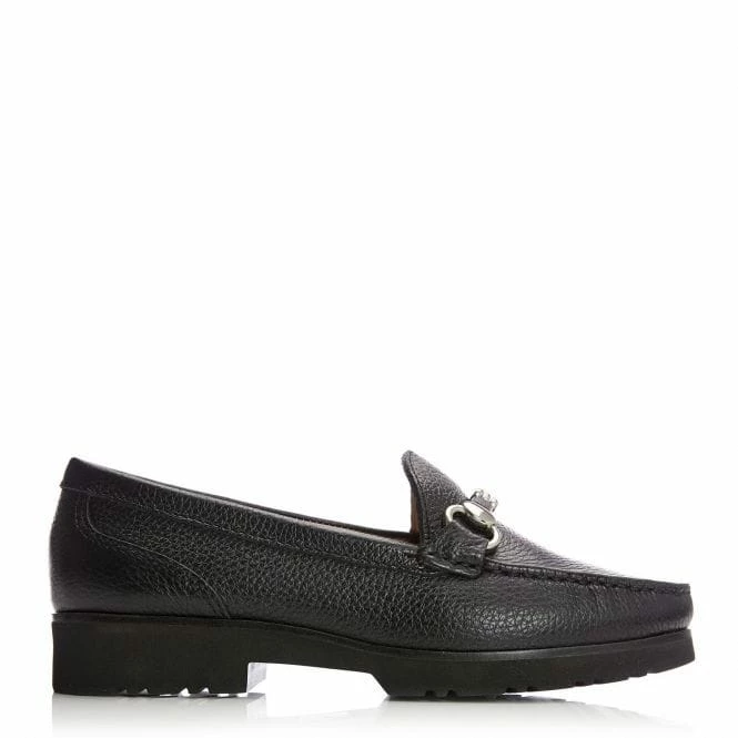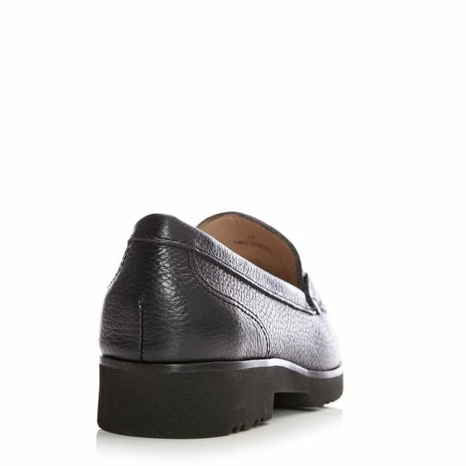 The perfect all day shoe, this moccasin style gala black leather flat teams up with any outfit to give you comfort and style all day long. With leather lining and metal trim, these flats offer a great look without compromising on comfort.
