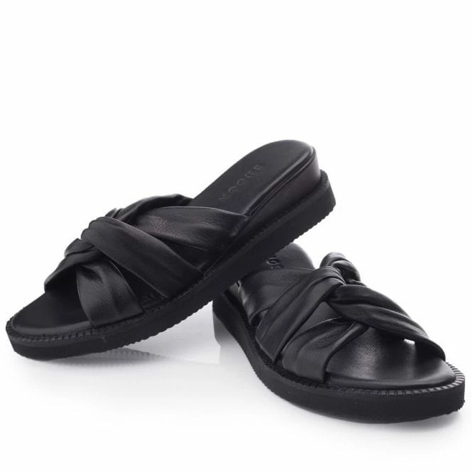 Soft, Knotted Vamp Mule Sandal On Covered Wedge Sole