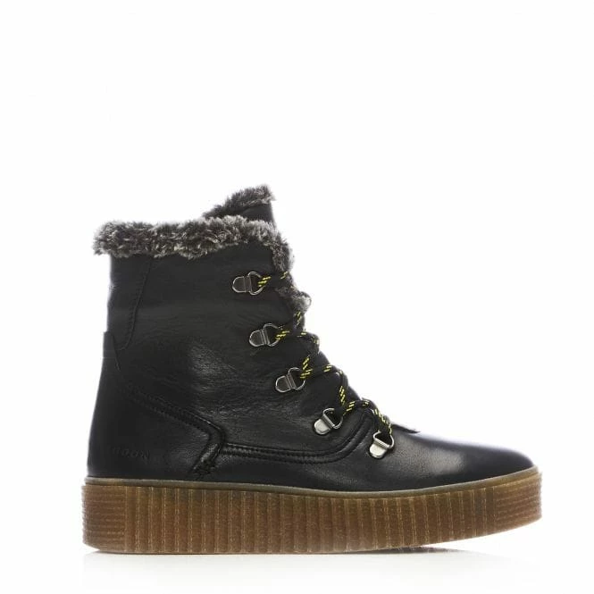 Infur from the Shoon collection will keep you cosy in the colder seasons thanks to the faux fur lining and a leather sock, ensuring they feel as good as they look. The contrasting ski hook style laces add detail whilst still leaving the boot effortless to style. Perfect to pair with an oversized coat.