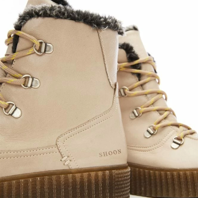 Infur from the Shoon collection will keep you cosy in the colder seasons thanks to the faux fur lining and a leather sock, ensuring they feel as good as they look. The contrasting ski hook style laces add detail whilst still leaving the boot effortless to style. Perfect to pair with an oversized coat.