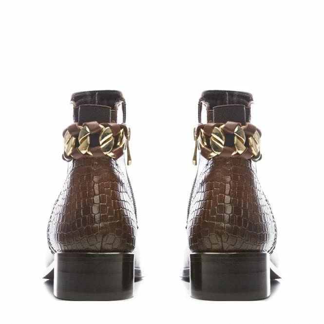 Rise to the occasion in Wren. This classic, smart ankle boot is perfect for pairing with a blazer, shirt and jeans. The elastic back allows the shoe to move with you – whilst the inside zip allows easy foot entry. Complete with trendy chain detail.