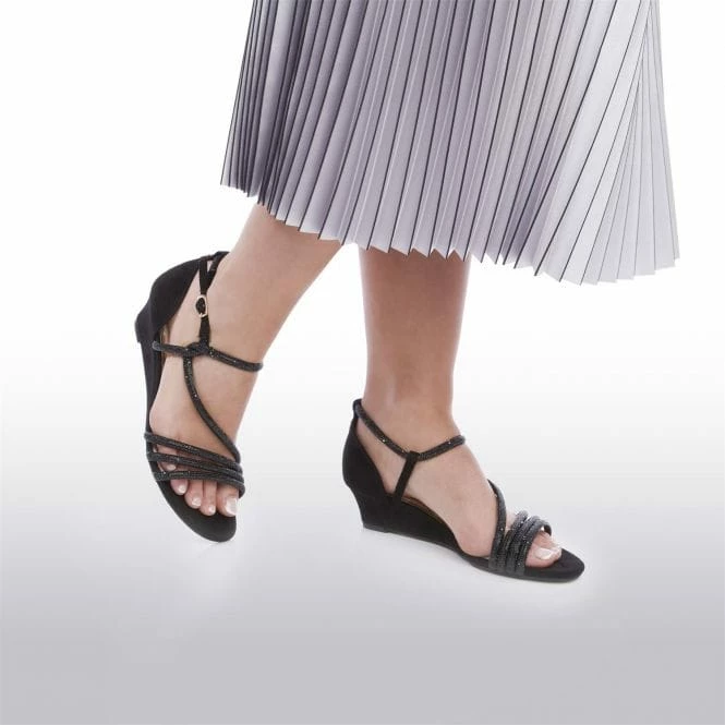 Accelerate your occasionwear with Yazmina. The demi wedge makes this style perfect for a lady who likes a lower heel without compromising on glamour. Complete with a diamante detail strap for a secure wear whilst adding to the impact.