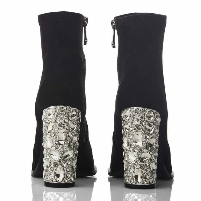 Upgrade your boot collection with Zamina. Featuring a gorgeous glitz heel, perfect for adding a touch of glam to any outfit. The inside zip allows for effortless foot entry whilst the leather sock ensures it feels as luxurious as it looks.