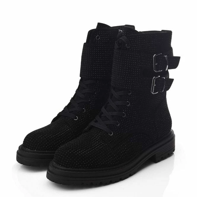 Make an impression in Zori. Featuring gorgeous glitzy detail, this chunky lace up boot has double strap detail and inside zip for effortless foot entry. The soft faux fur lining and leather sock ensure the boot feels as good as it looks.